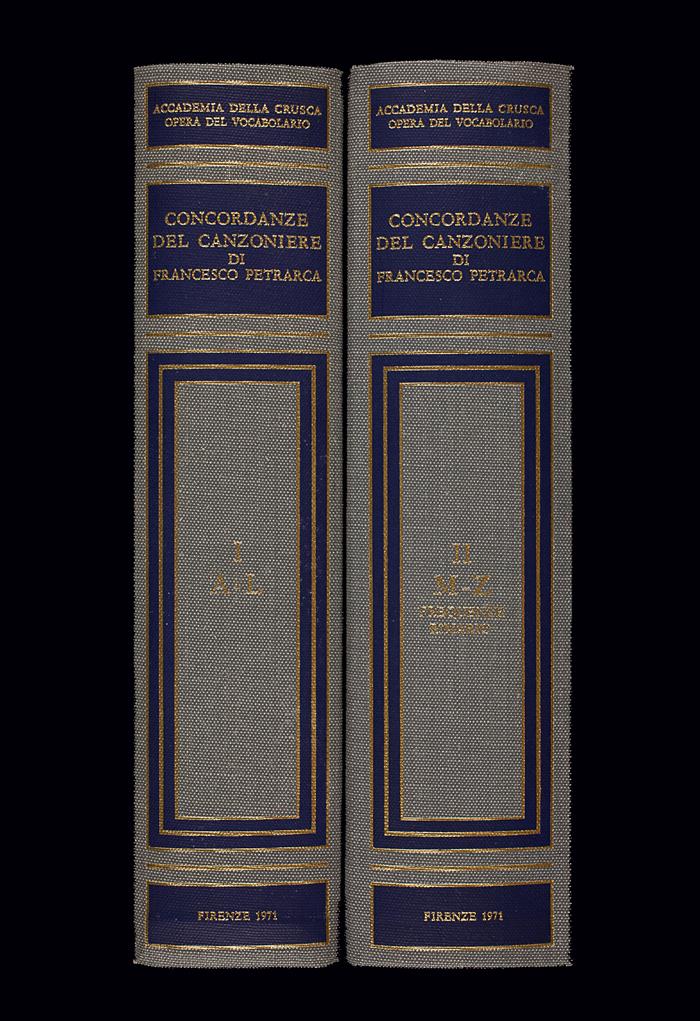 L'opera che presentiamo è frutto di un lavoro attentissimo e paziente svolto dall'Ufficio lessicografico dell'Accademia della Crusca sul testo «Canzoniere» quale è offerto dall'edizione Contini pubblicata da Einaudi, depurata di alcuni errori di stampa e con lievi ritocchi apportati da Contini stesso. L'analisi delle Rime è stata compiuta con l'aiuto del calcolatore elettronico (presso CNUCE, Centro Nazionale Universitario di Calcolo Elettronico, di Pisa), mentre la stampa si è avvalsa del procedimento automatico della fotocomposizione (presso ILTE di Torino), nella quale il nastro magnetico stesso guida la composizione e impaginazione su pellicola fotografica.