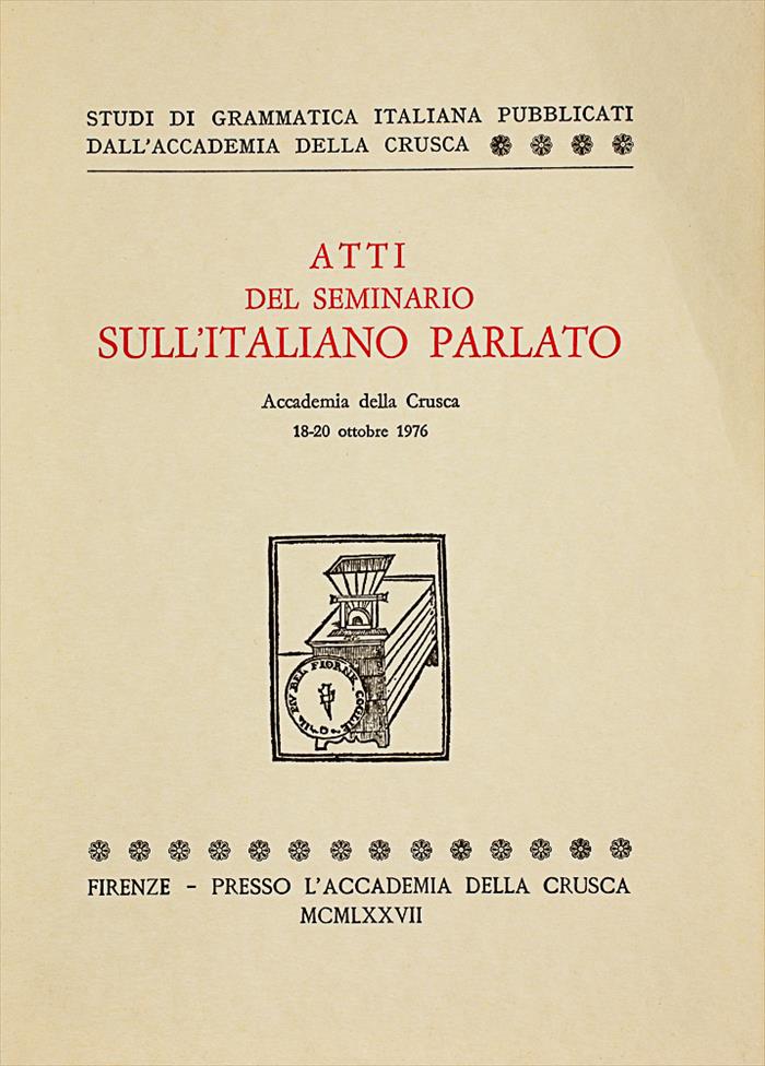 Raccoglie in volume autonomo gli atti del convegno pubblicati anche nel vol. VI (1977) degli «Studi di Grammatica Italiana»